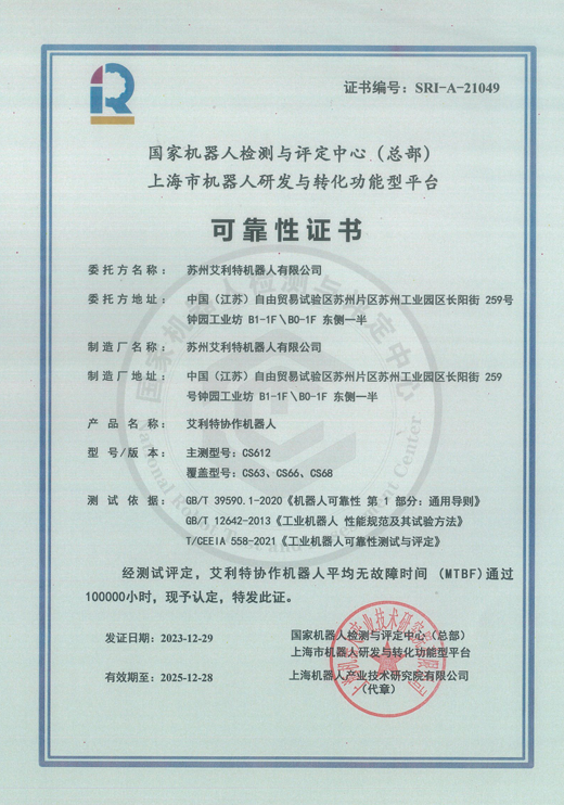 (十)國(guó)內(nèi)首個(gè)全面通過EN ISO 13849-1:2015(PL=d, CAT 3)、ISO 10218-1:2011、EN 60204-1:2018和EN ISO 12100:2010四大認(rèn)證。已取得CR、CE、UL、RoHS、Semi-2、智能等級(jí)等主要國(guó)家和地區(qū)準(zhǔn)入、應(yīng)用環(huán)境準(zhǔn)入證書。