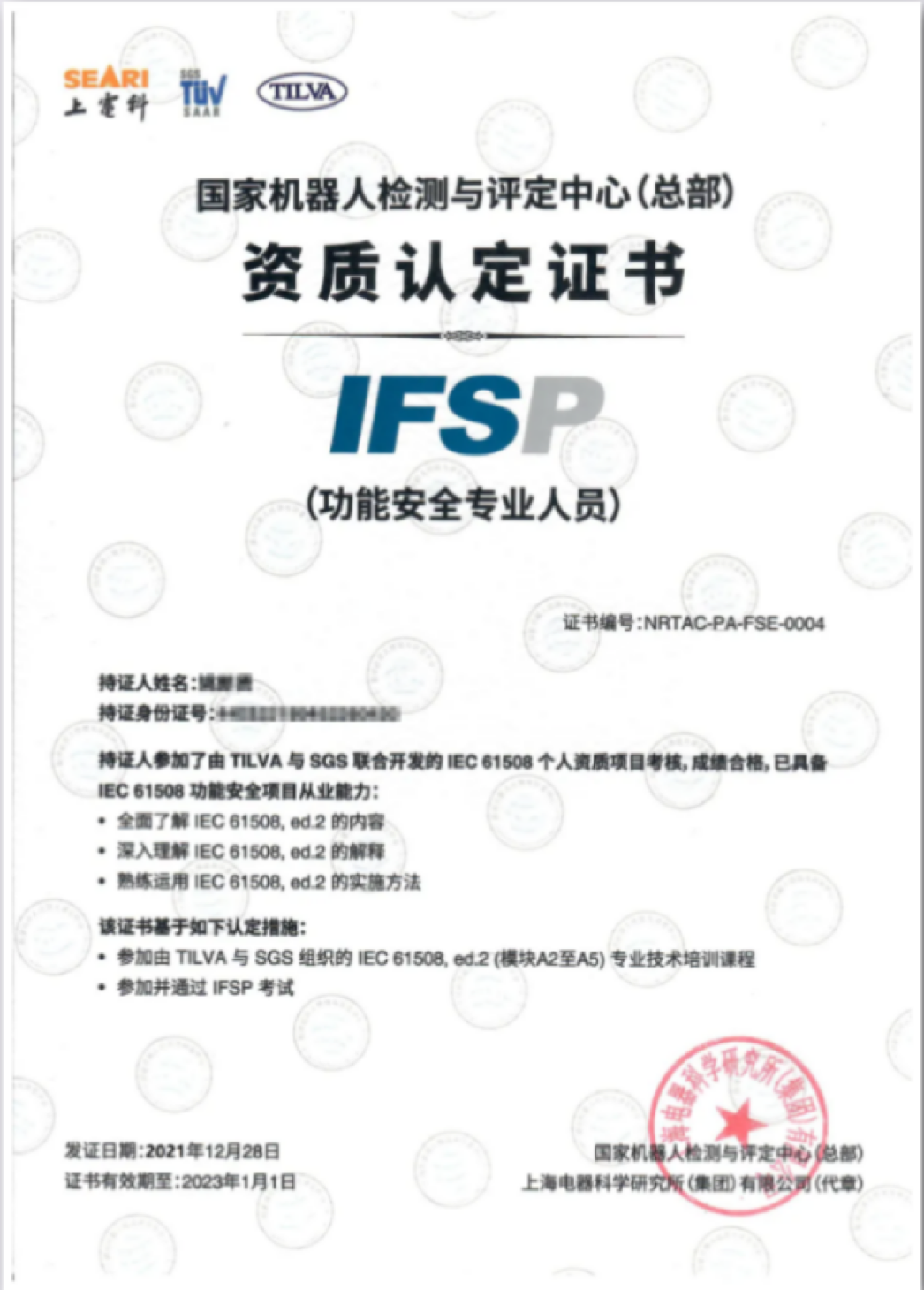 目前國際機器人功能安全認證及中國機器人認證升級版在實施過程中,均對企業人員的功能安全職業資格提出明確要求。在此背景下,IFSP工業功能安全認證培訓正逐漸成為工業領域的重要提升手段。2024年7月31至8月2日,國家機器人檢測與評定中心(總部)攜手SGS共同主辦的IEC 61508/IS013849機器人/智能制造功能安全工程師IFSP個人資格培訓即將在上海隆重舉行。本次培訓由國評中心攜手SGS共同授課,除了功能安全標準外,講師將結合工業安全領域實際應用情況,增加工業自動化產品(機器人/AGV/激光雷達/安全光幕/各類安全零部件/芯片)功能安全需求,工業信息安全詳細講解,從實際設計案例出發,詳細介紹以上領域功能安全解決方案。順利完成課程及考試后,培訓學員可獲得功能安全專業人員資質認定證書(IFSP證書)。