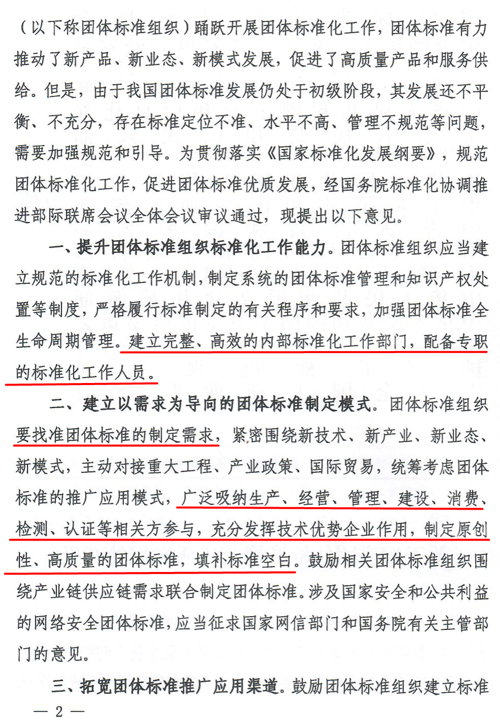 為貫徹落實《國家標準化發展綱要》,規范團體標準化工作,促進團體標準優質發展,經國務院標準化協調推進部際聯席會議全體會議審議通過,國家標準化管理委員會等十七部門聯合印發了《關于促進團體標準規范優質發展的意見》。