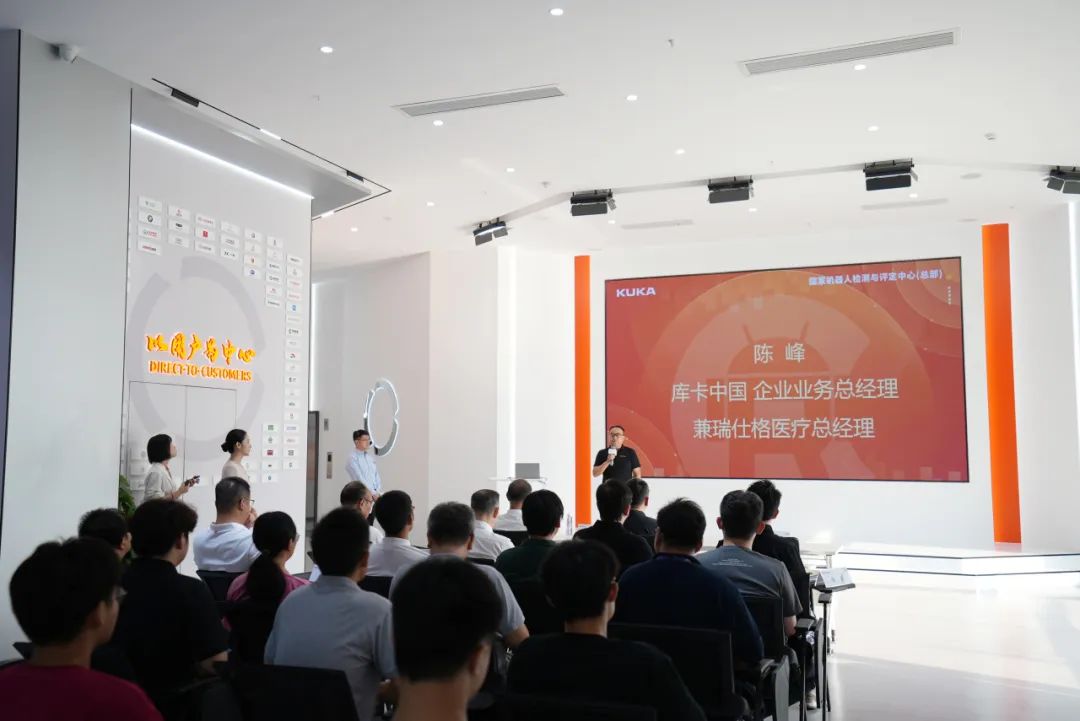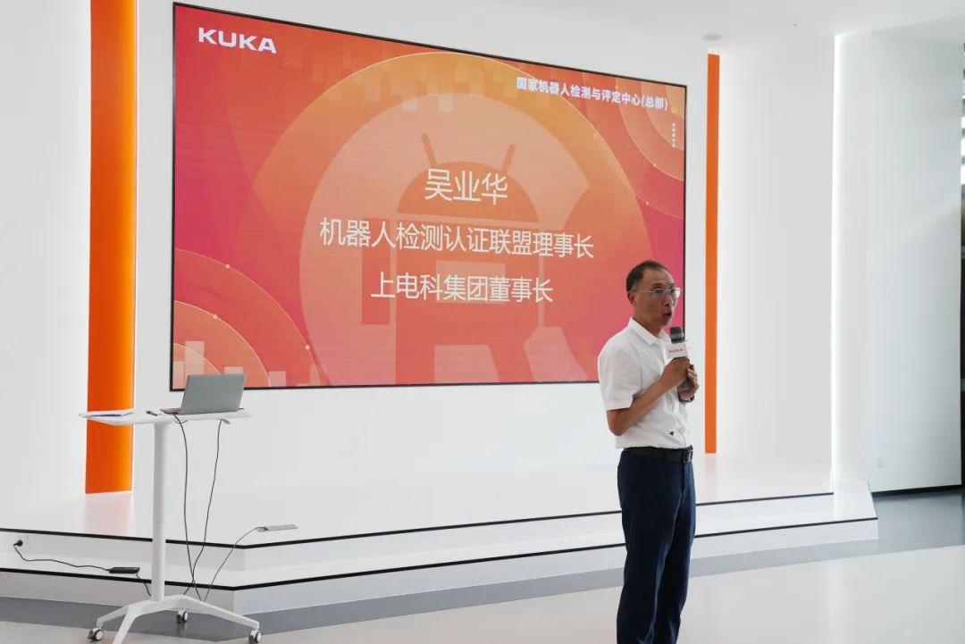 中國機器人檢測認證聯盟理事長、上海電器科學研究所(集團)有限公司董事長吳業華,庫卡中國總經理許桂友,庫卡中國企業業務總經理兼瑞仕格醫療總經理陳峰,質量總監沈毅,研發總監張冶,國家機器人檢測與評定中心(總部)主任、東升國際(中國)機器人有限公司官網院長鄭軍奇,常務副院長柴熠,機器人檢測服務產品線經理朱曉鵬等出席了本次頒證儀式。