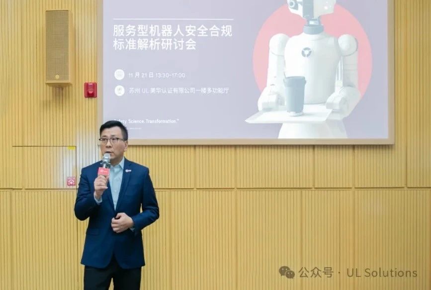 蘇州UL美華認證有限公司總經理施峻先生指出此次聯合研討會的目的是為了助力行業人員深入了解服務機器人,更有效地應對標準變化。這也標志著UL Solutions與上電科進一步深化戰略伙伴關系,在服務機器人檢測認證領域開展更緊密的合作,為國內服務機器人企業提供更便捷的一站式檢測認證服務。