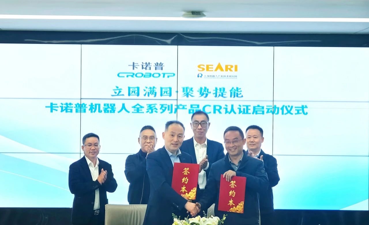 隨后,卡諾普機器人技術股份有限公司與上海電器科學研究所(集團)有限公司在卡諾普華月路產業園隆重舉行全系列機器人產品CR認證簽約儀式。