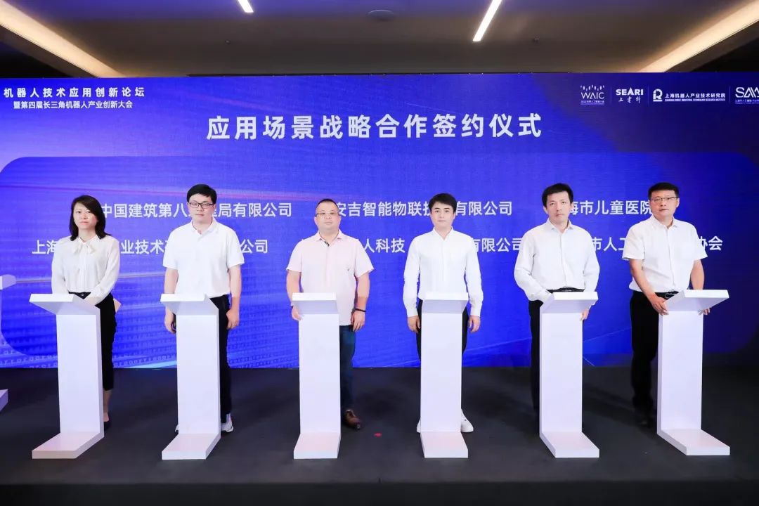 會議現場,機器人應用場景推進中相關的機器人企業、應用場景需求方和科研機構3方進行了簽約。在建筑施工、物流配送、餐飲配送、醫療康復、醫療檢測、環境提升、樓宇遞送等重點領域達成戰略合作。