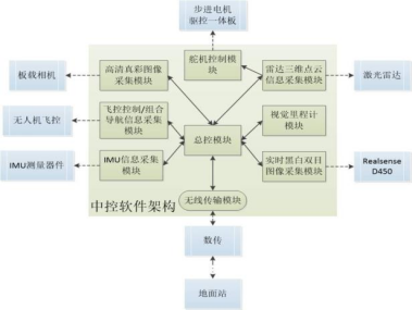 多元信息采集系統用 C++實現各傳感器的通信和與地面站通信系統的建立,分為八個功能模塊和一個總控模塊,以實現各個功能性硬件、處理單元與操作端的互聯互通。