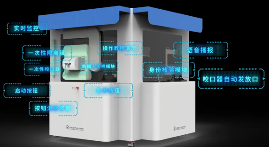 ●檢測(cè)者可自主完成采樣:檢測(cè)者掃描檢測(cè)碼后,放置并佩戴一次性咬口器,按下開(kāi)始按鈕,便可啟動(dòng)機(jī)器人開(kāi)始采樣操作。整個(gè)過(guò)程操作簡(jiǎn)單,無(wú)需輔助,可實(shí)現(xiàn)被測(cè)人員自主完成采樣全過(guò)程。